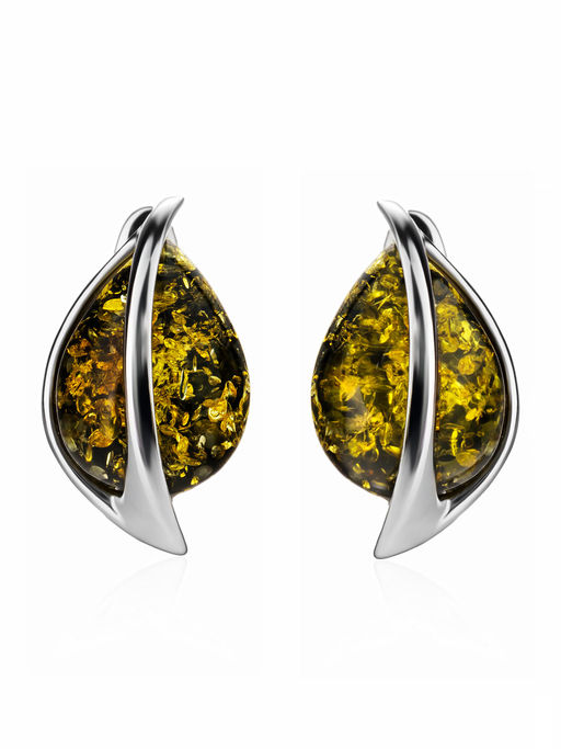 Стильные серьги с натуральным янтарём зелёного цвета Голконда