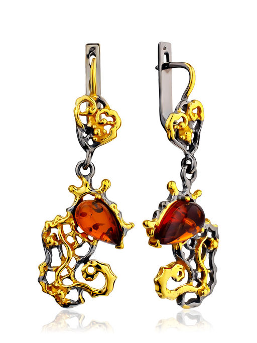 Ажурные серьги Ариэль с натуральным коньячным янтарём
