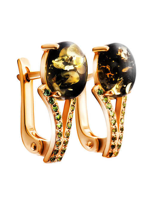 Миниатюрные позолоченные серьги с зелёным янтарём Ренессанс