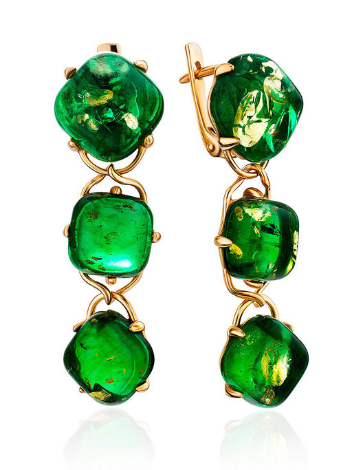 Роскошные серьги с изумрудно-зелёным янтарём Византия