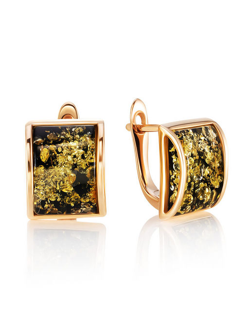Элегантные прямоугольные серьги London с искрящимся зелёным янтарём