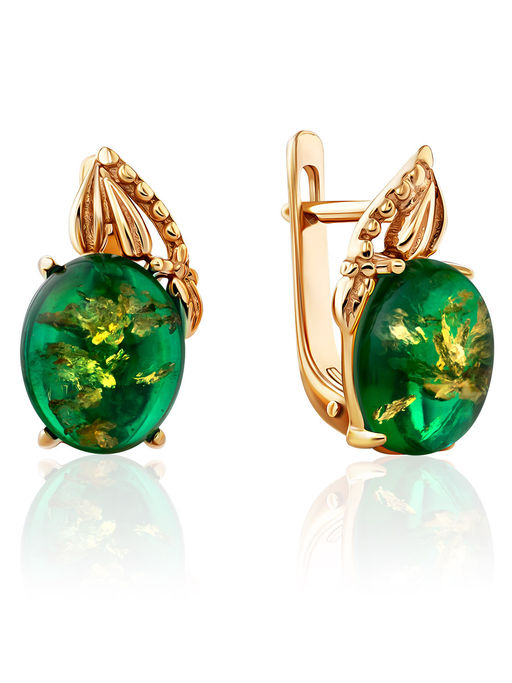 Яркие броские серьги с янтарём изумрудного оттенка Кармен