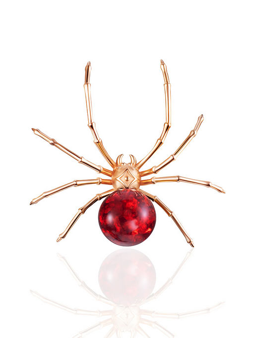 Изящная позолоченная подвеска Паучок с красным янтарём