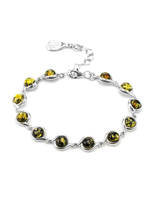 Изящный браслет, украшенный натуральным янтарём зелёного цвета Ягодки крупные