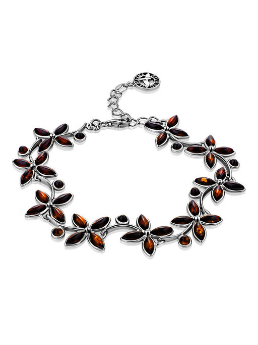 Роскошный браслет из натурального янтаря тёмно-коньячного цвета Лаванда