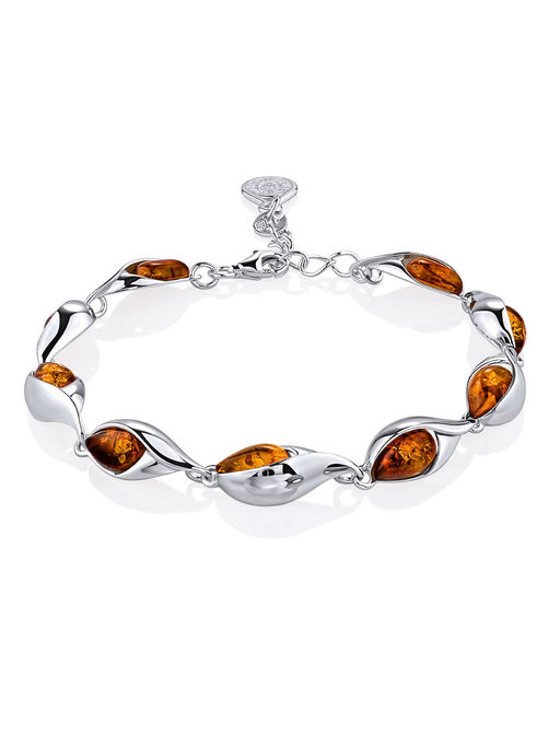Тонкий браслет с натуральным коньячным янтарём Пион