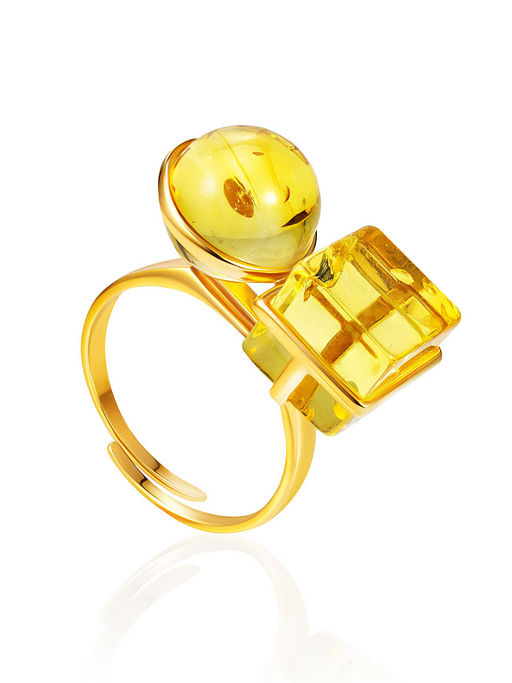 Стильное объёмное кольцо Рафинад с ярко-лимонным янтарём