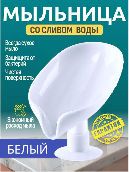 Подставка для мыла Белая со сливом на присоске 12x8x10см, мыльница
