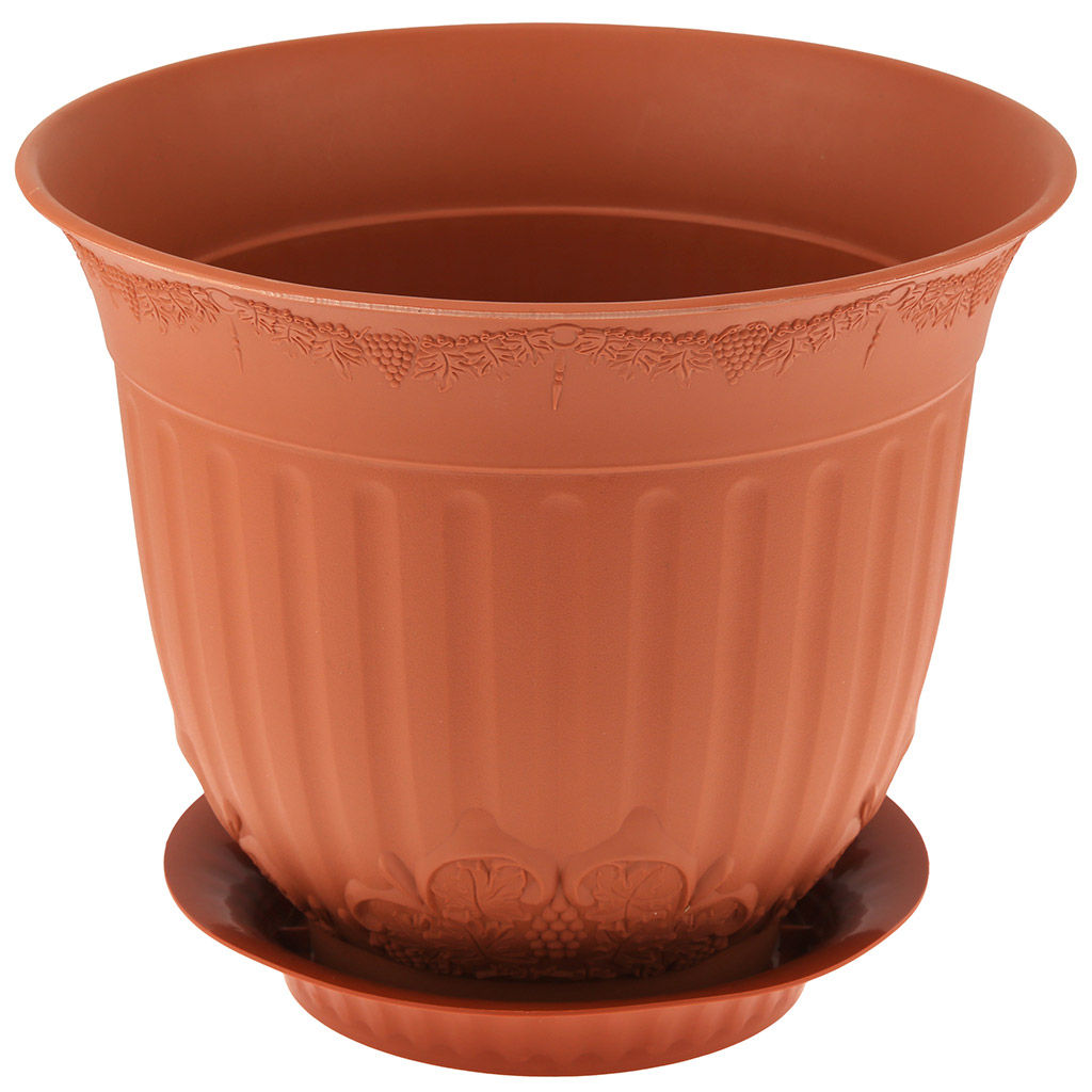 "Терракот" Горшок для цветов пластмассовый 11л, с поддоном, д29см, h30см, резной орнамент, морозостойкий полипропилен, т.м. NECO (Россия)