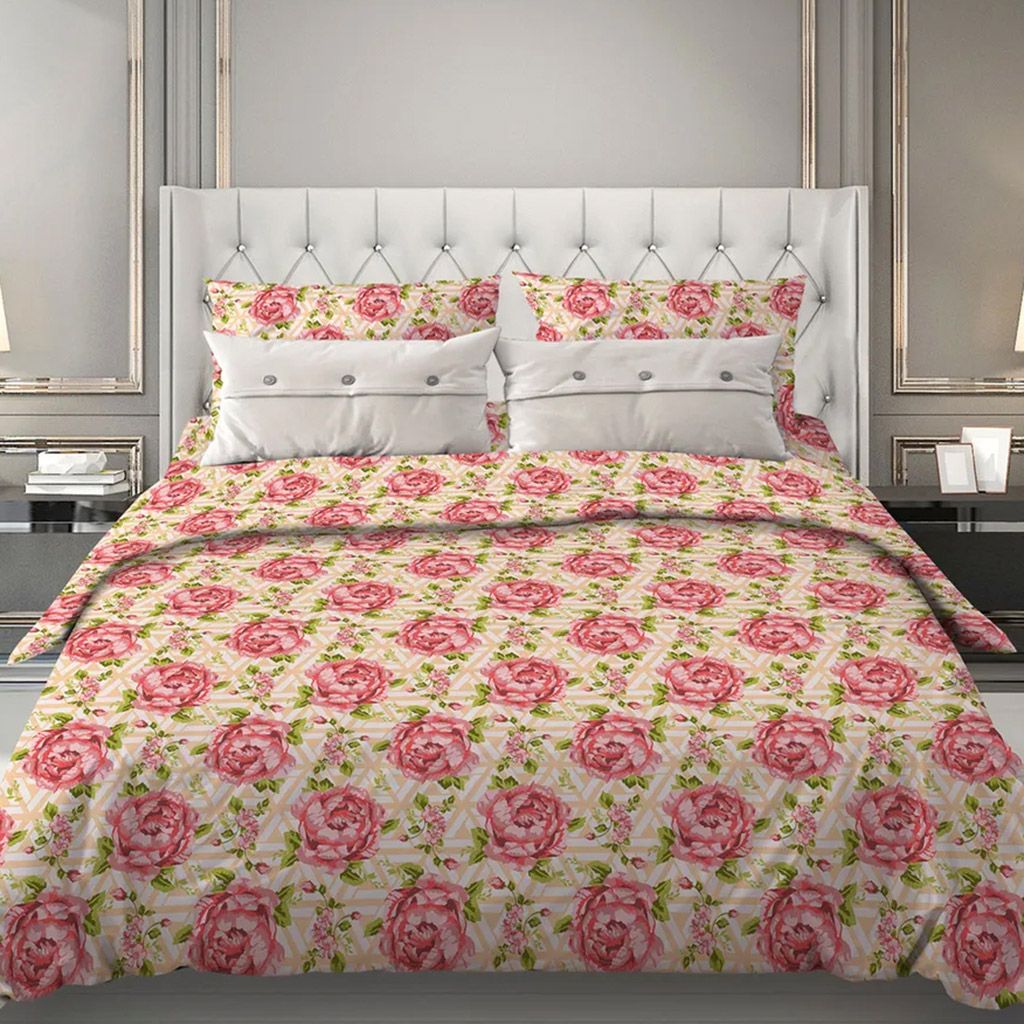 "Пионы, беж" Постельное белье, комплект 1,5 спальный, 4 предмета: пододеяльник 145х215см, простыня 150х215см, 2 наволочки 70х70см с клапаном-запахом, бязь 121г/м2, хлопок 100%, "Домашняя мода" (Россия)