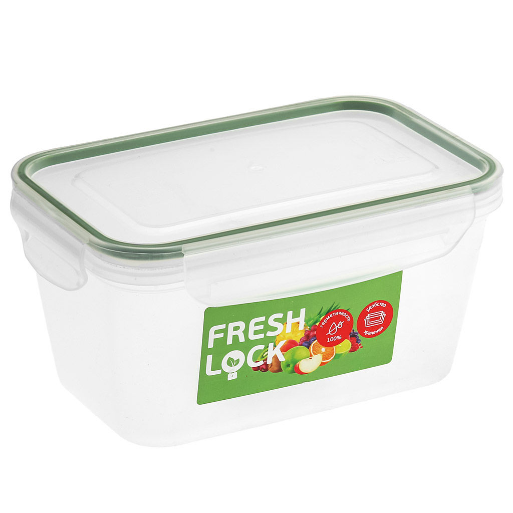 Контейнер из полипропилена "Fresh Loсk" 1,4л, 18х11,5х8,5см, герметичный, силиконовый уплотнитель, ручки-клипсы, прозрачный, подходит для СВЧ (Россия)