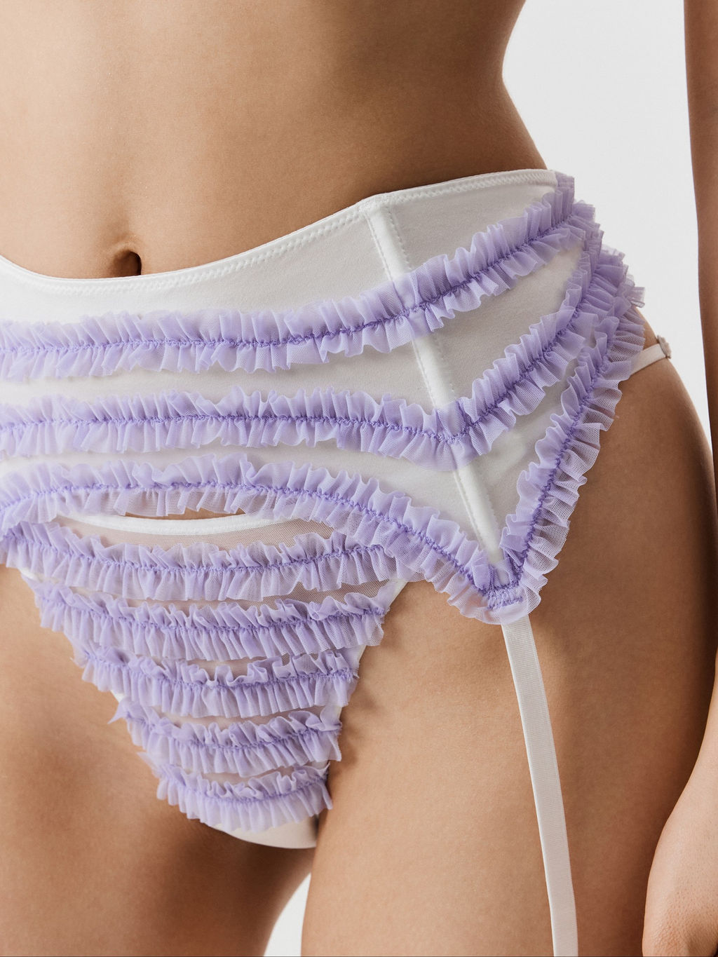Infinity / Трусы стринги-бразилиано с поясом для чулок Apasta белый