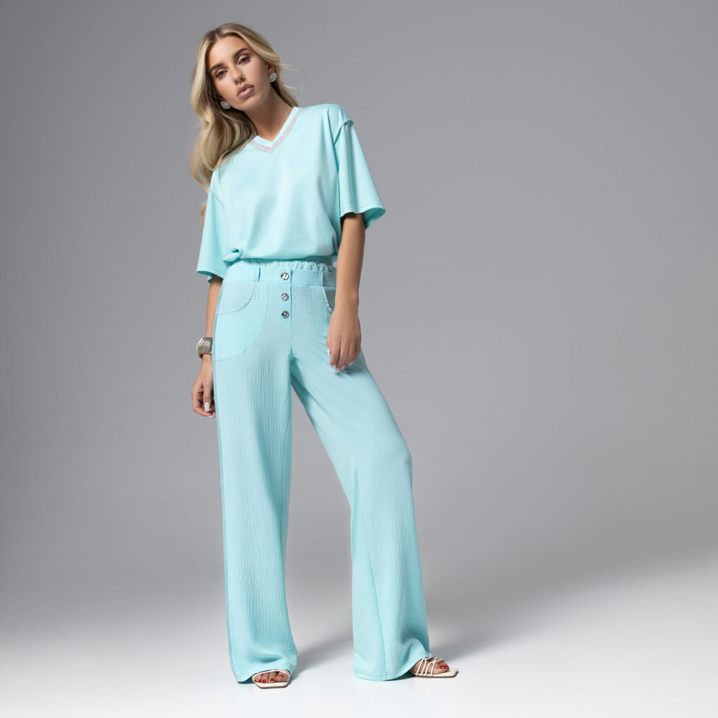 Брюки с двойным поясом Раскованный шик (лазурные)