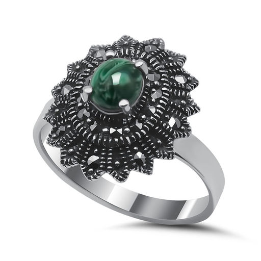 Кольцо с малахитом и марказитом