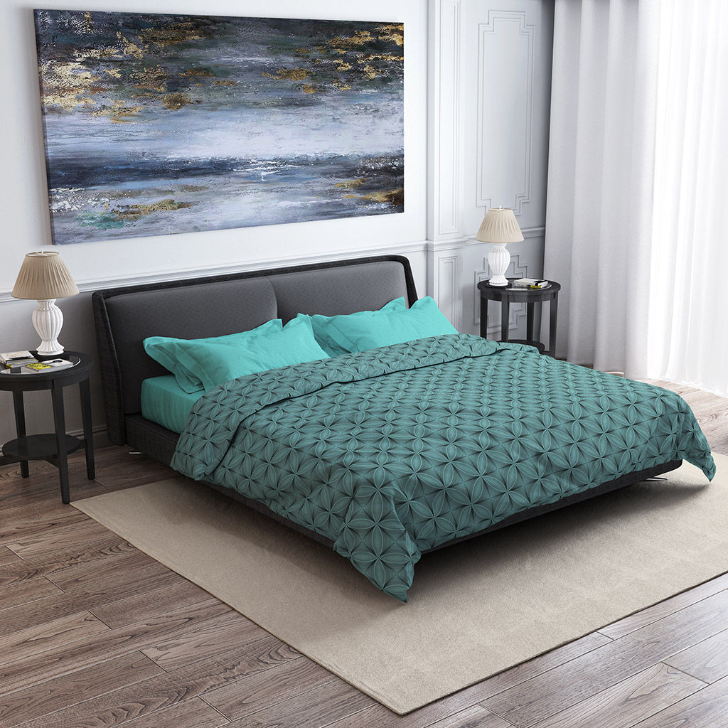 Постельное белье, комплект 1,5 спальный "Энигма, мятный/Мятный", 3 предмета: пододеяльник на кнопках 145х215см, простыня 150х220см, 1 наволочка 50х70см с клапаном-запахом, поплин "Комфорт" 115г/м2, хлопок 100%, упаковка "эконом" ПВХ 32х41см, "Домашня