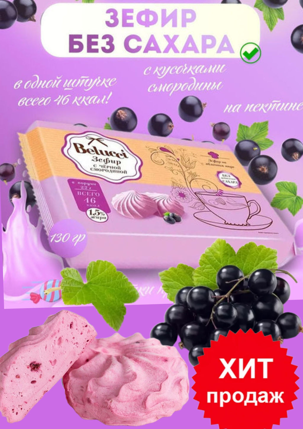 Зефир с чёрной смородиной Belucci, 130 г