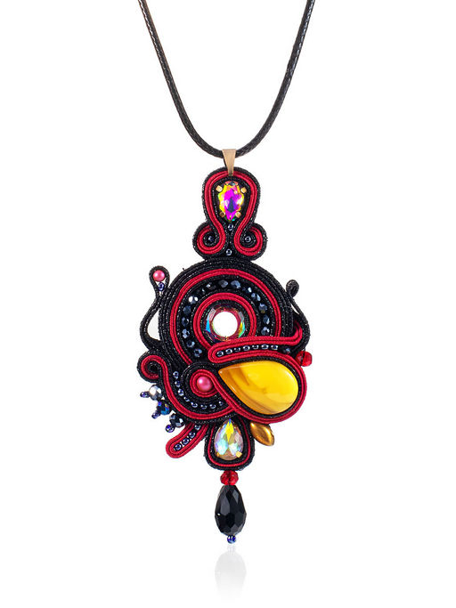 Яркая плетёная подвеска на шнурке, украшенная медовым янтарём и кристаллами Индия