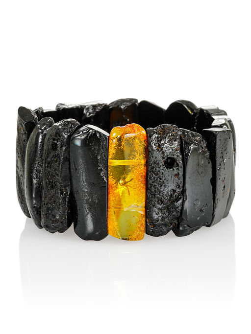 Браслет Помпеи из чёрного янтаря с инклюзом комарика