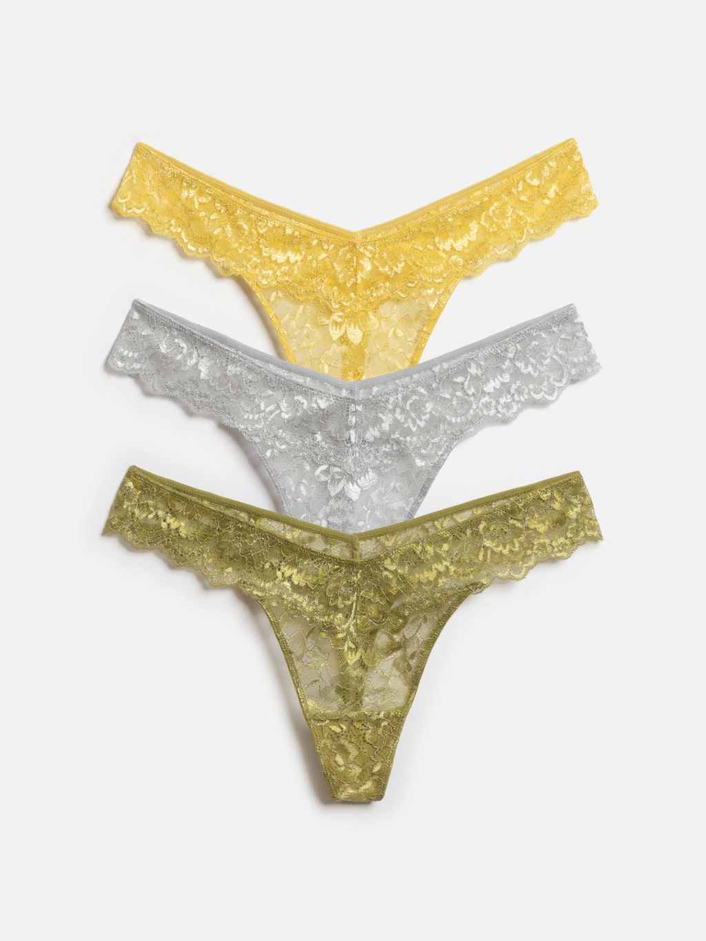 Infinity / Трусы стринг женские в наборе из 3 шт. Metalita зеленый со св.серым