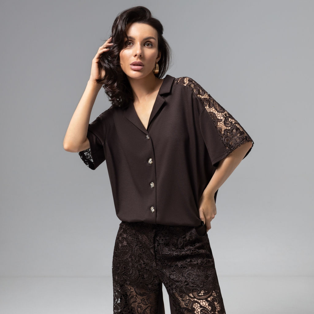 Рубашка комбинированный с кружевом, Стильное дежавю (горький шоколад)