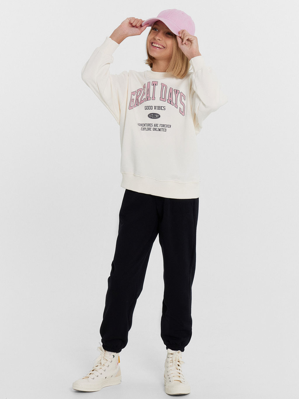 Комплект для девочек (джемпер, брюки) в молочном и черном цвете с печатью