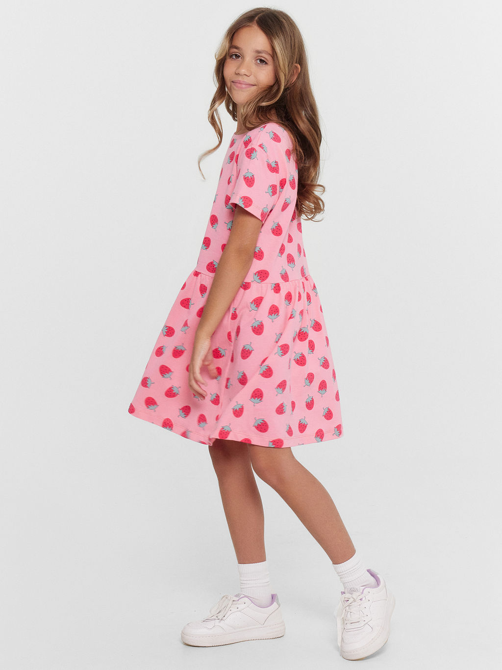 Платье для девочек розовое с принтом "клубнички"
