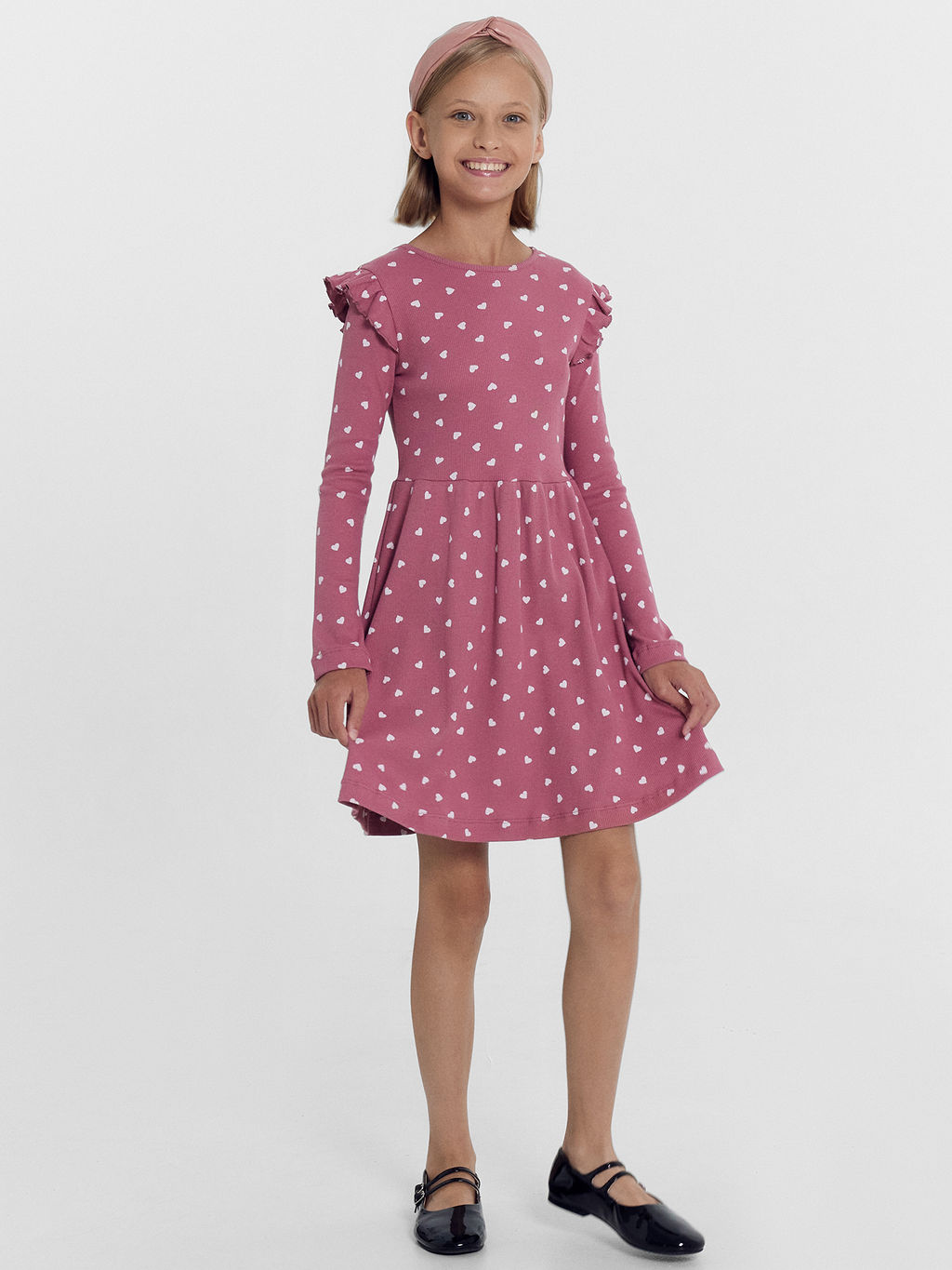 Платье для девочек в розовом оттенке с белыми сердечками