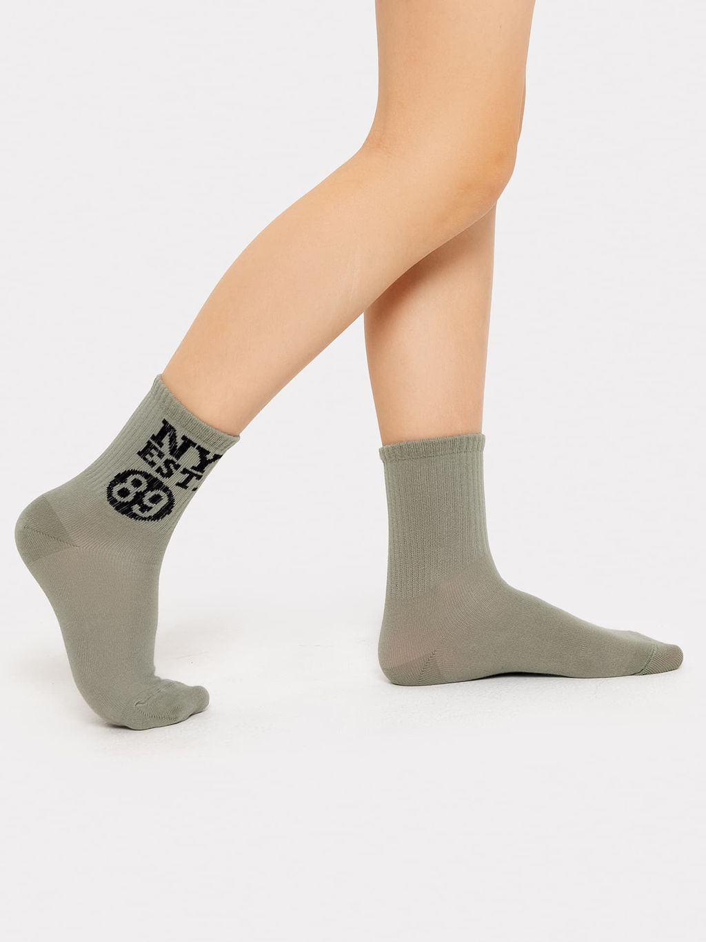 Цена за 5 пар! Носки детские зеленые с рисунком в виде надписи
