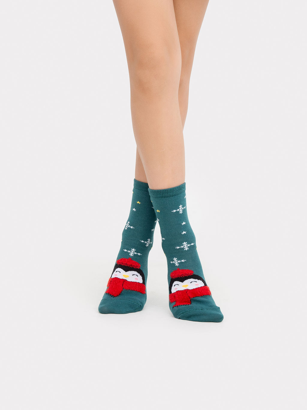 Цена за 5 пар! Носки детские малахитово-зеленые с рисунком в виде зайцев