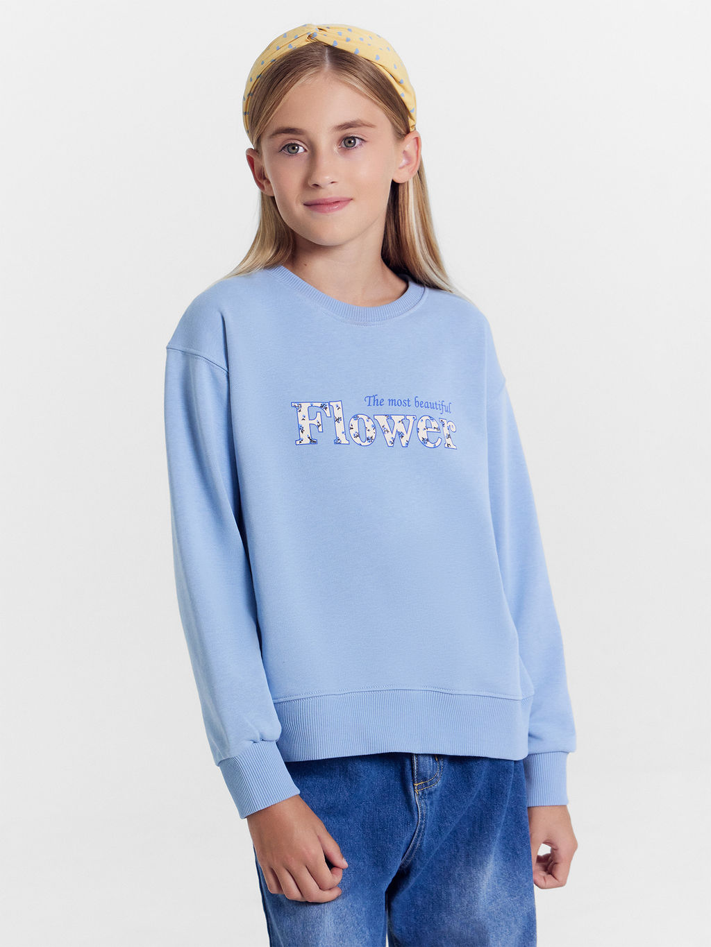 Свитшот для девочек в пыльно-голубом цвете с печатью