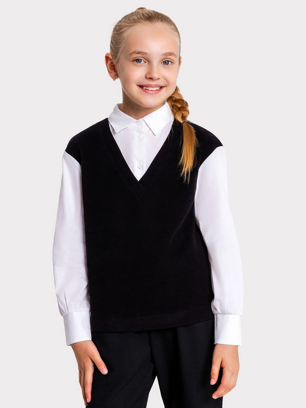 Джемпер-обманка для девочек в черном оттенке