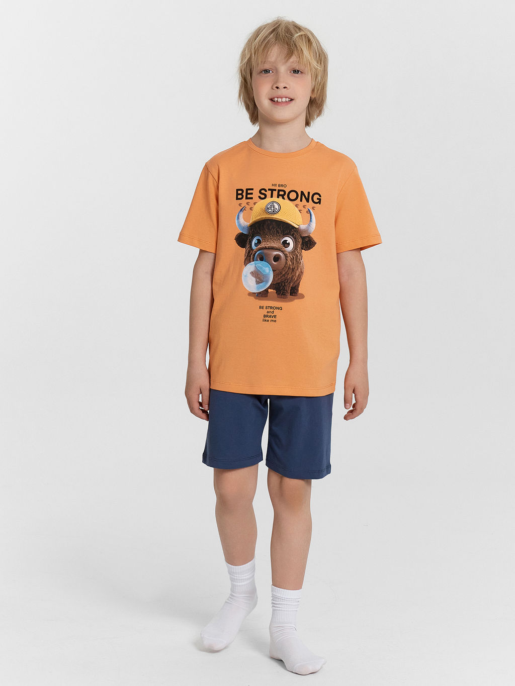 Комплект домашний для мальчиков коричневый с принтом и надписью "League"