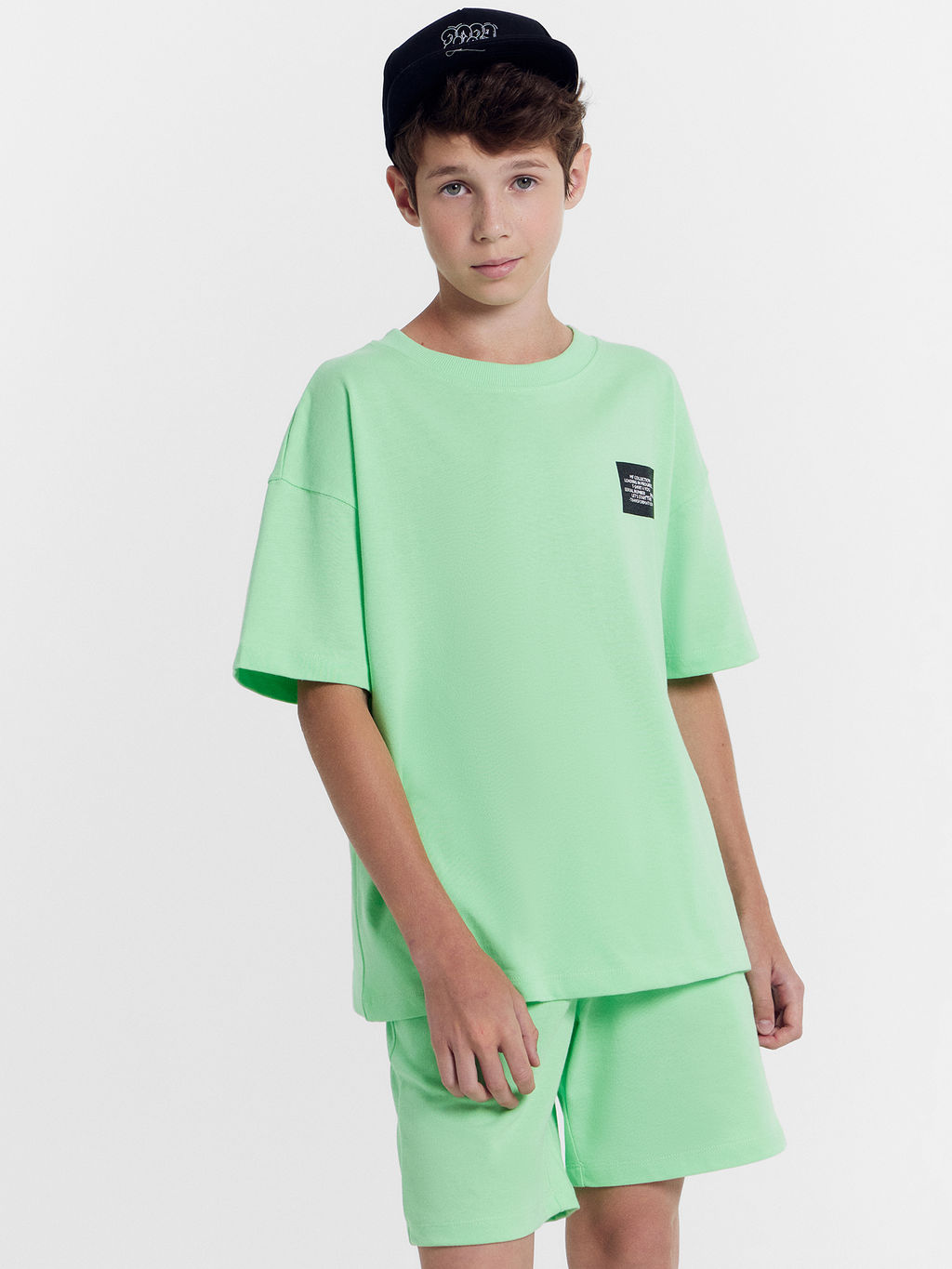 Комплект для мальчиков (футболка, шорты) светло-зеленый с печатью