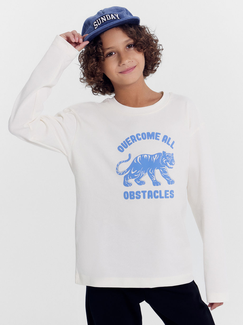 Лонгслив для мальчиков бело-бежевый с печатью