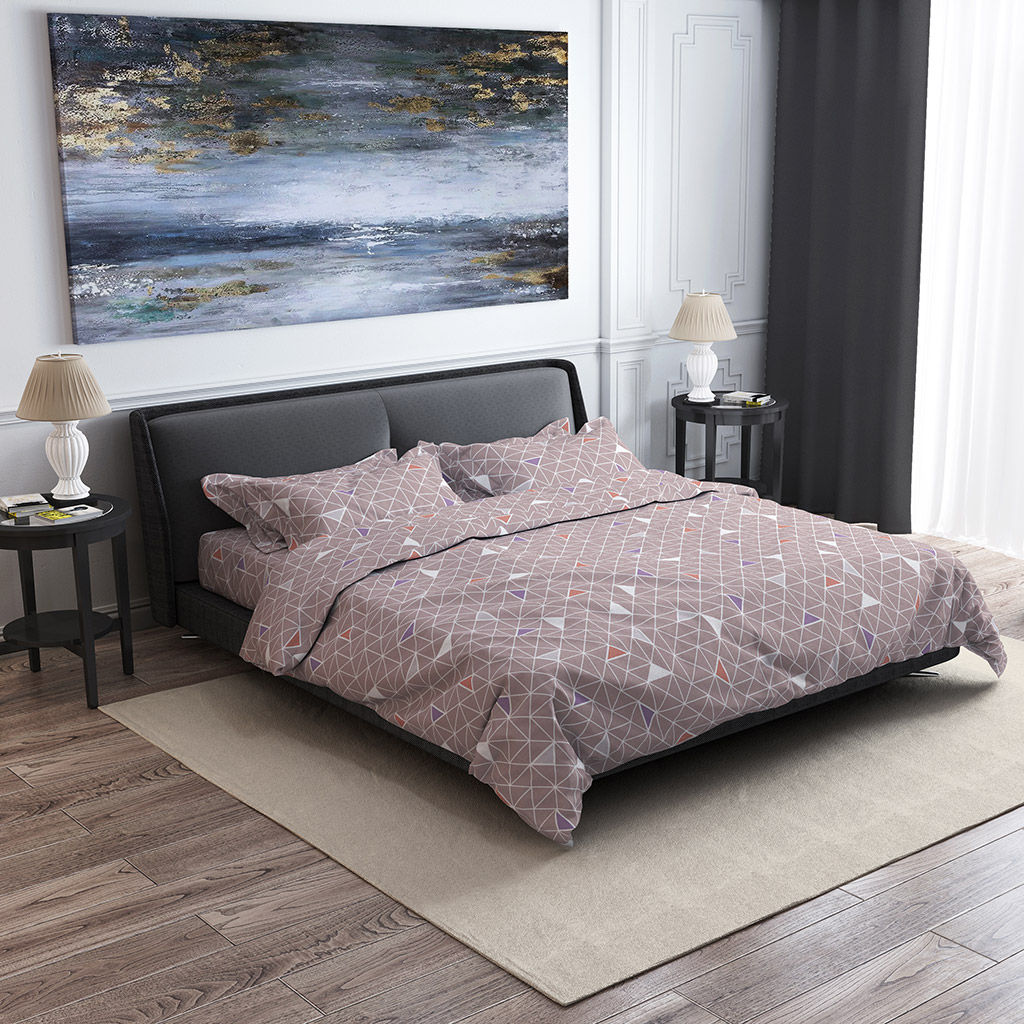 Постельное белье, комплект Дуэт (семейный) "Треугольники, мокко" 5 предметов: 2 пододеяльника 145х215см, евро-простыня 220х240см, 2 наволочки 70х70см с клапаном-запахом, бязь 121г/м2, хлопок 100%, упаковка "классическая" ПВХ 34,5х41см, "Домашняя мода