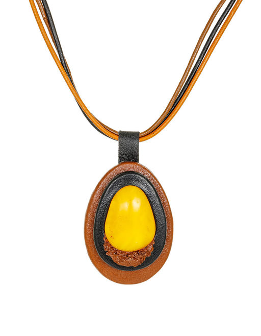 Колье из кожи Амазонка с медовым янтарём
