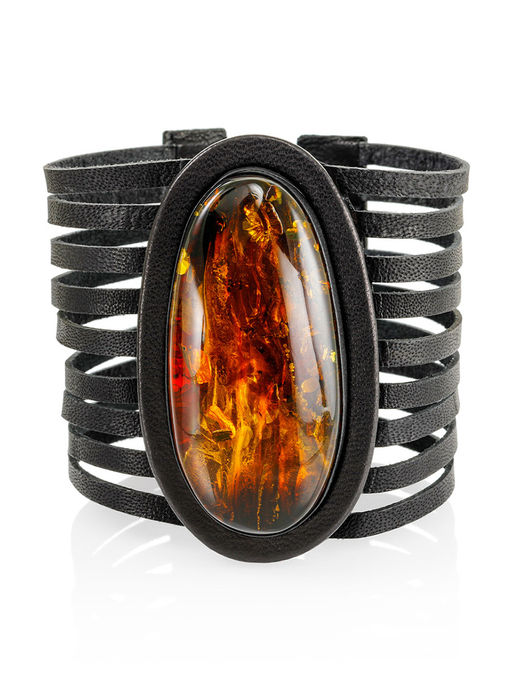Браслет Амазонка из кожи с вишнёвым янтарём