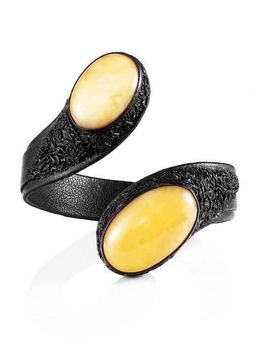 Браслет Змейка из кожи с медовым янтарём