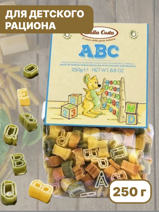 Макаронные изделия без яиц "Dalla Costa" со шпинатом и томатами "Алфавит" (0,250 кг)