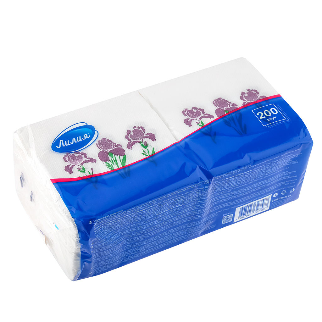 Салфетки бумажные 24х24см "Лилия", 1 слойные, 200 штук в упаковке, "Ирисы" (Россия)