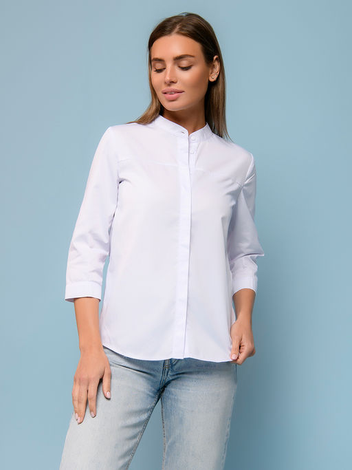 Блуза белая с рукавами 3/4 и воротником-стойка