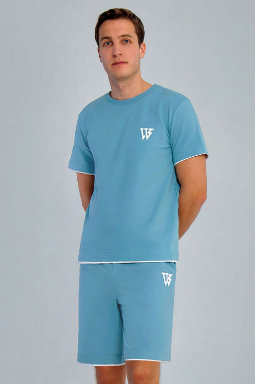Арт. 63605 Комплект с шортами мужской 48-56 (5 шт) Цвет:верх-голубой,низ-голубой