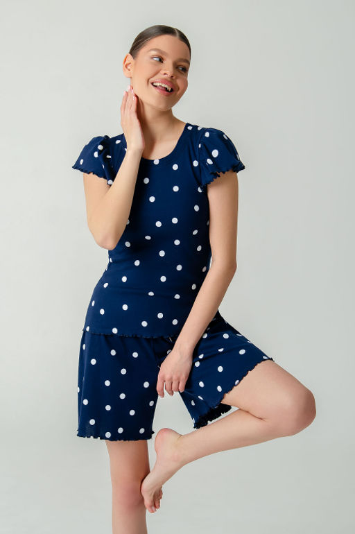 Артикул: Арт.9176/1 Пижама с шортами 42-48 (4 шт) Цвет:синий, белый
