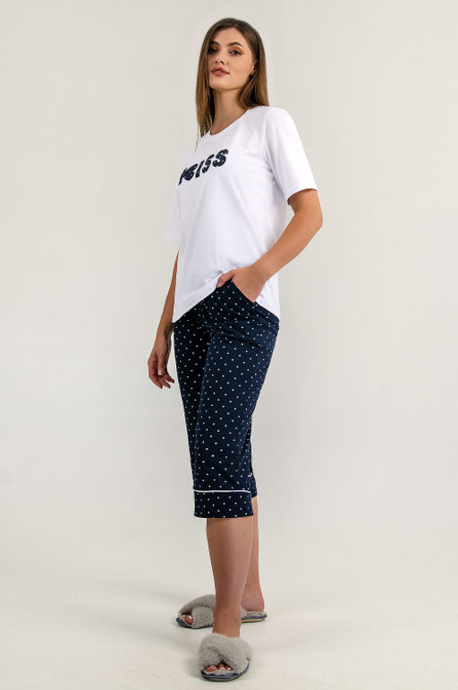 Арт. 9165 Пижама с бриджами 44-50 (4шт) Цвет:верх-белый,низ-темно-синий