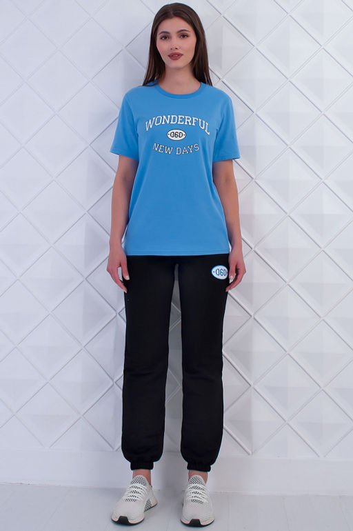 Артикул: Арт. 21368 Костюм с брюками женский 42-50 (5 шт) Цвет:верх-голубой,низ-черный