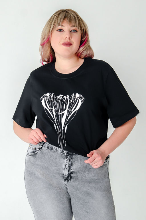 Арт. 3-1152 Футболка женская 50-58 (5 шт) Цвет:черный