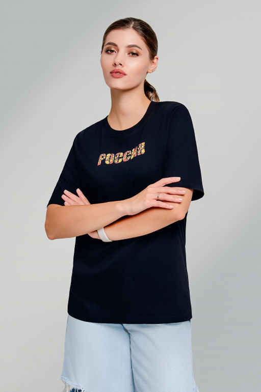 Артикул: Арт. 31141 Футболка женская "Россия" 44-50 (4 шт) Цвет:черный