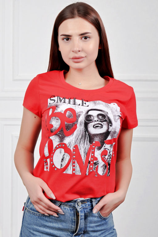 Арт. 879 Футболка женская 42-52 (6 шт) Цвет:красный