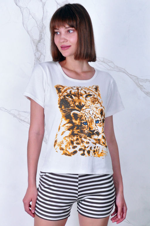 Артикул: Арт. 3372 Пижама с шортами 42-52 (6 шт) Цвет:верх-белый, низ-белый, коричневый