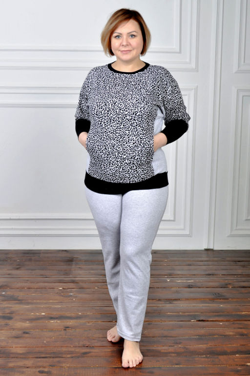 Артикул: Арт. 4498 Пижама с брюками 54-56 (2 шт) Цвет:верх-серый, черный, низ-серый